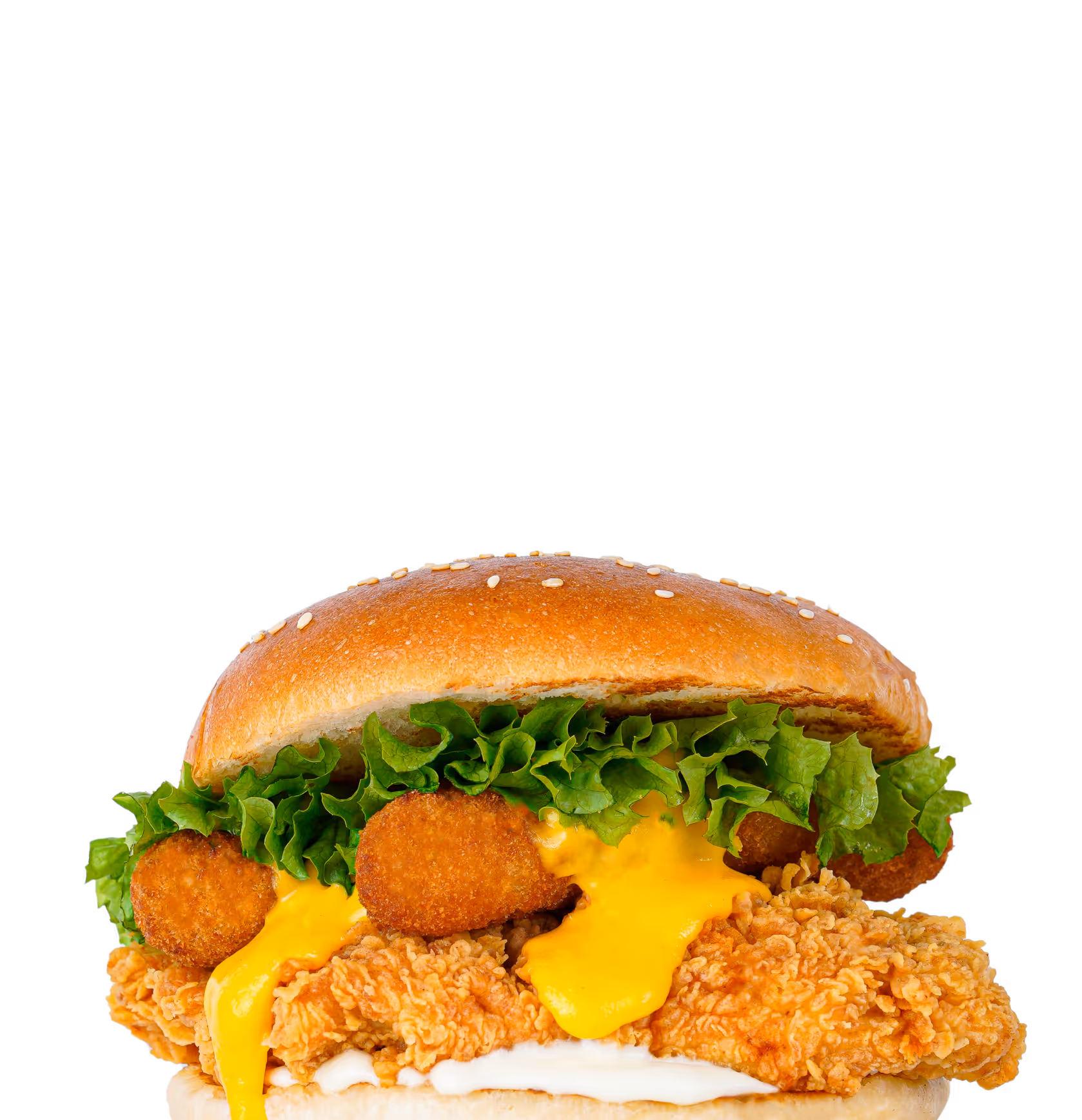 A flame-grilled beef patty meets juicy beef slices, layered with smoky BBQ and bold steak sauce. Crispy onions bring the crunch, while our creamy Cheezle sauce ties it all together on a toasted 5-inch sesame bun. A stacked bite of pure satisfaction.