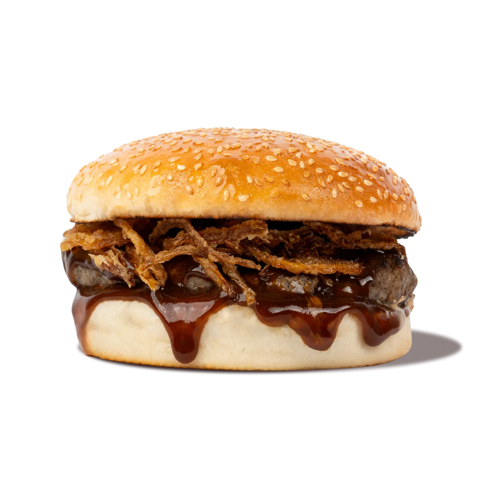 A juicy flame-grilled beef patty layered with crispy onions and smothered in smoky BBQ sauce. Served on a toasted 5-inch sesame bun, this burger delivers bold, satisfying flavor with every bite.