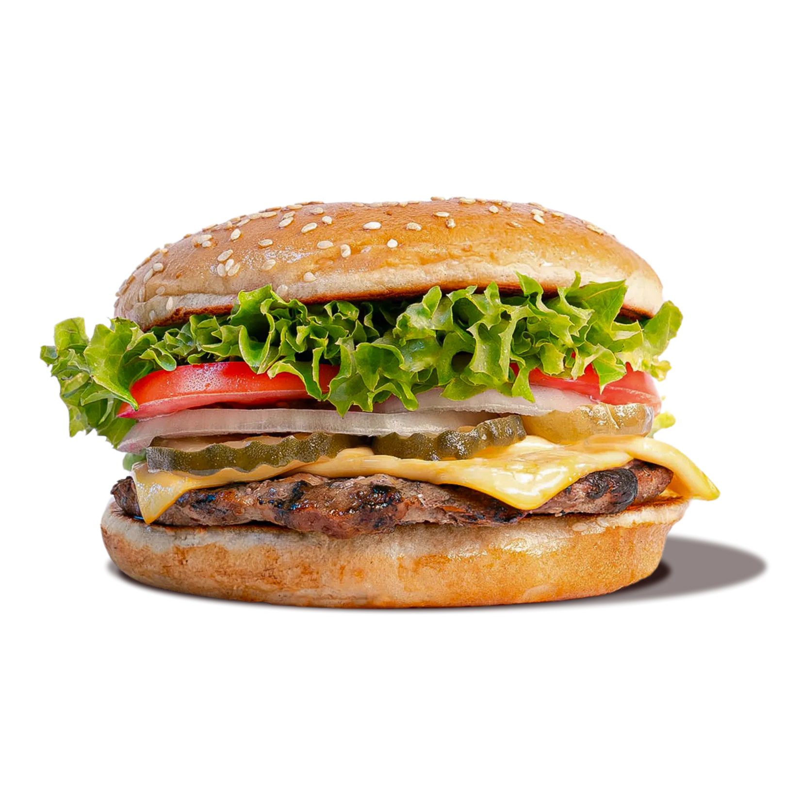 A flame-grilled beef patty topped with fresh lettuce, onion, and tomato. Finished with creamy Cheezle sauce and a touch of mayonnaise, all nestled inside a toasted 5-inch sesame bun. Classic, cheesy, and fresh.