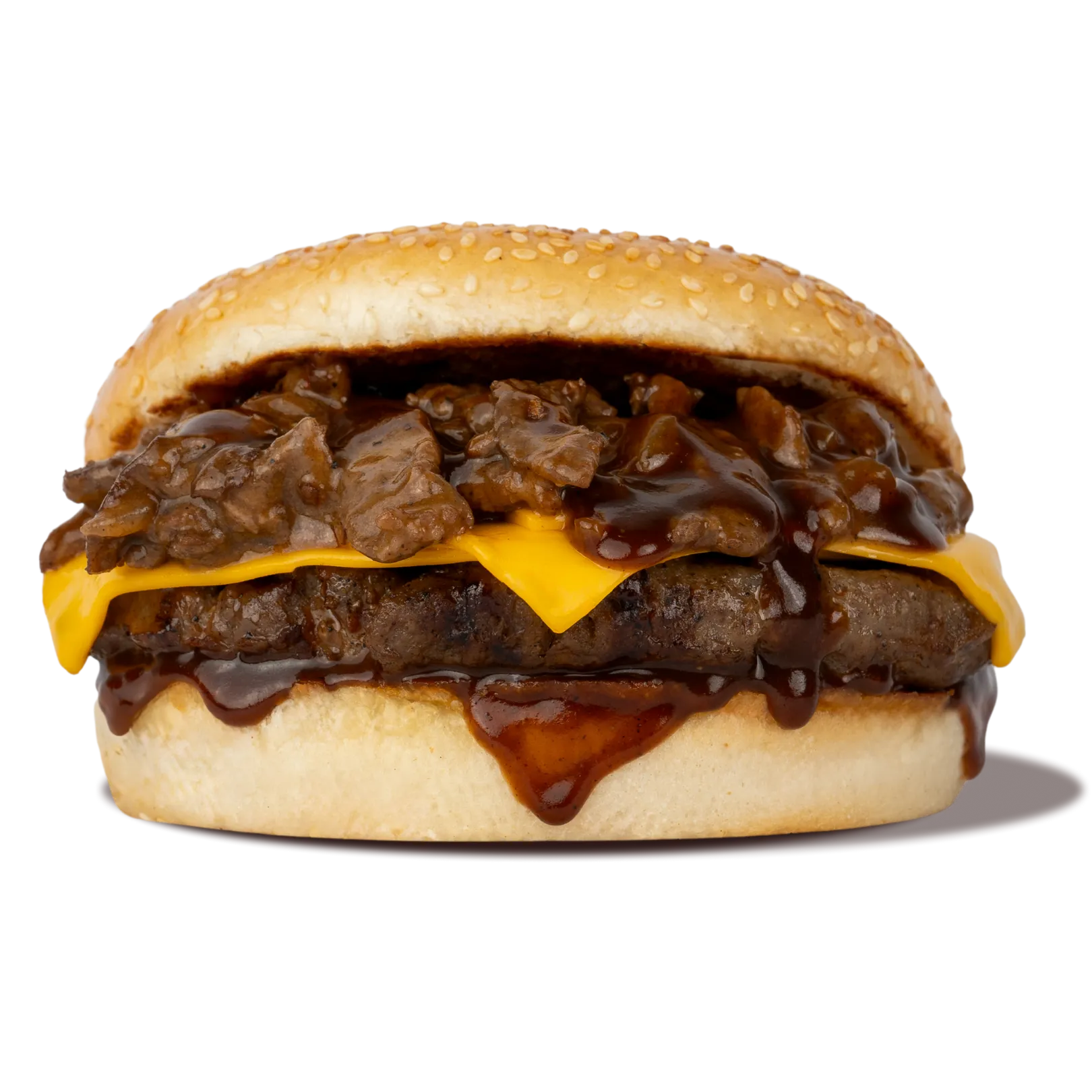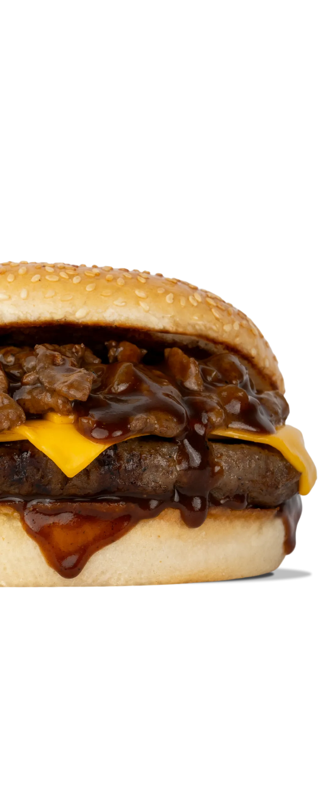 A flame-grilled beef patty meets juicy beef slices, layered with smoky BBQ and bold steak sauce. Crispy onions bring the crunch, while our creamy Cheezle sauce ties it all together on a toasted 5-inch sesame bun. A stacked bite of pure satisfaction.