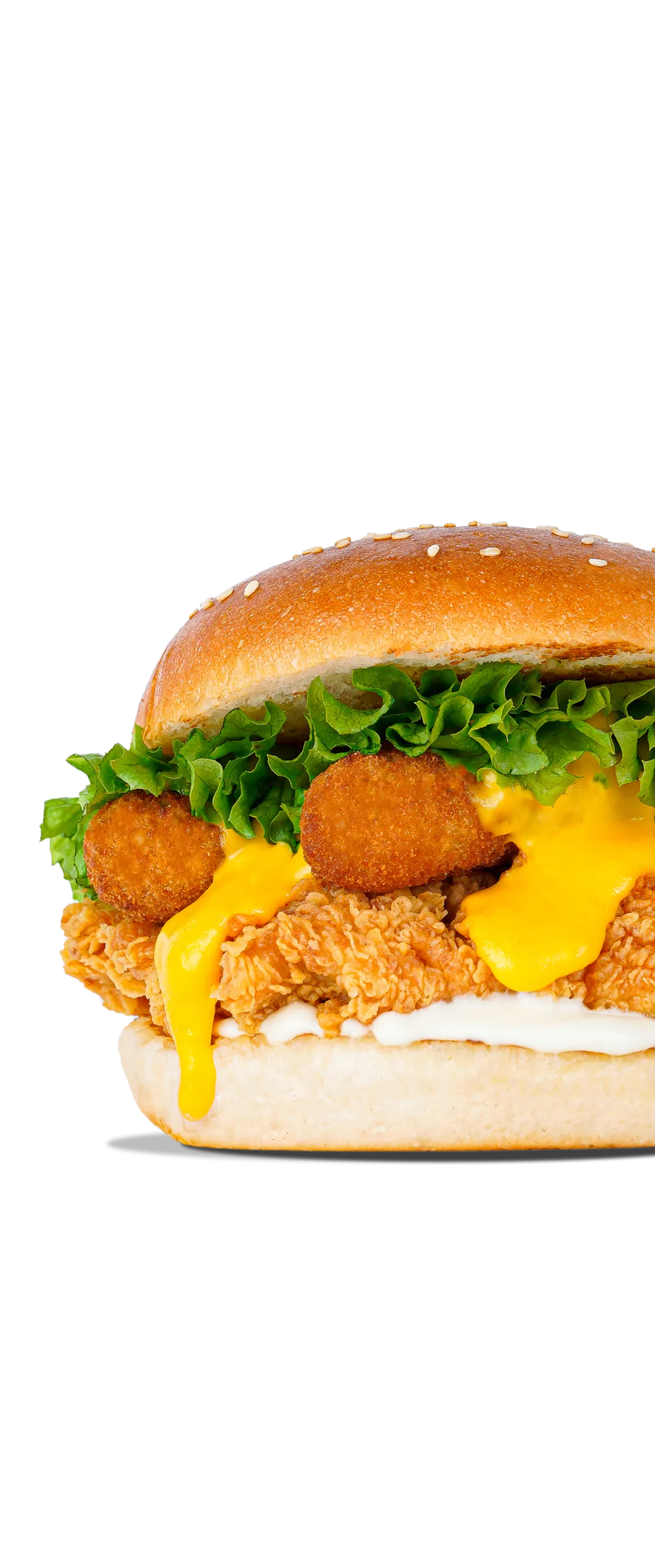A flame-grilled beef patty dressed with tangy Thousand Island sauce, fresh lettuce, onion, tomato, and crunchy pickles. Finished with creamy Cheezle sauce and served on a toasted 5-inch sesame bun—a classic all-American bite.