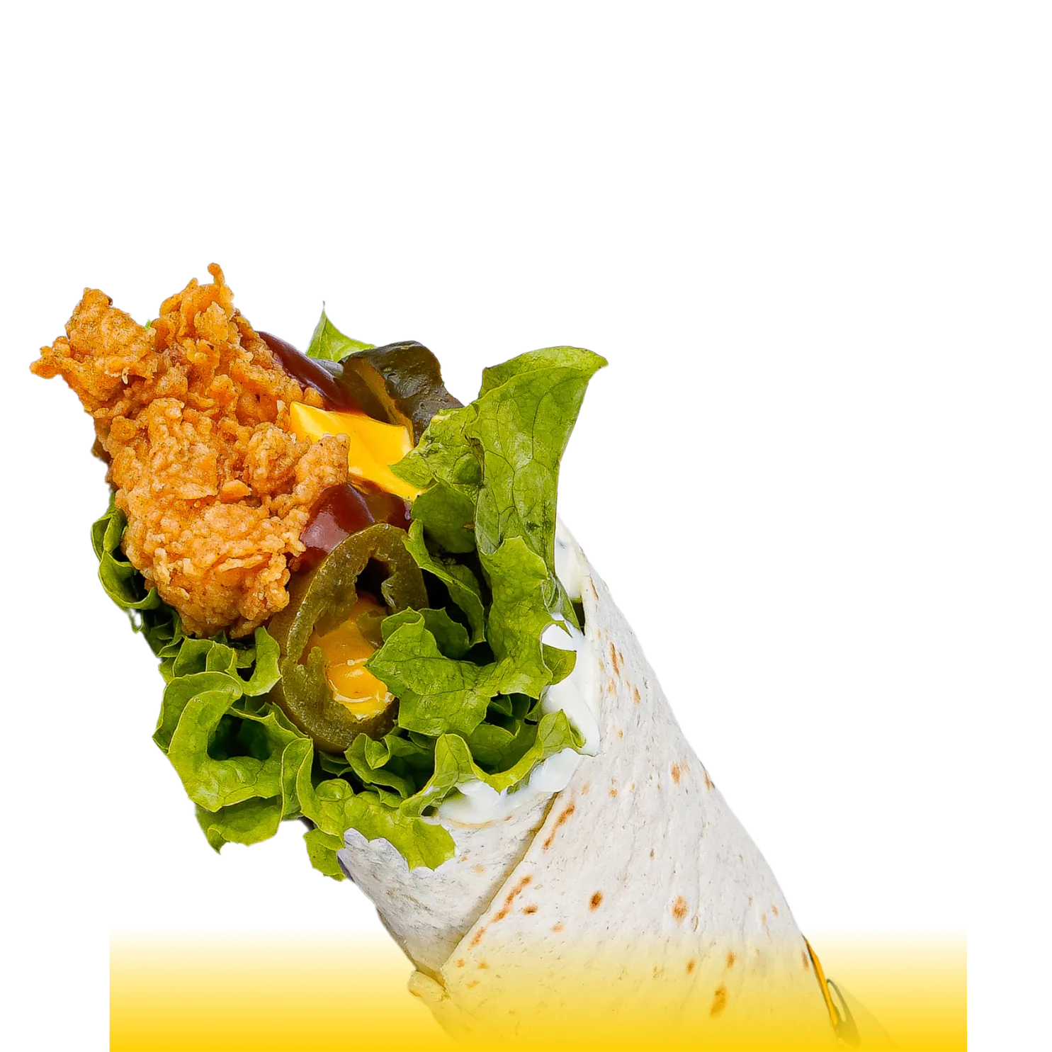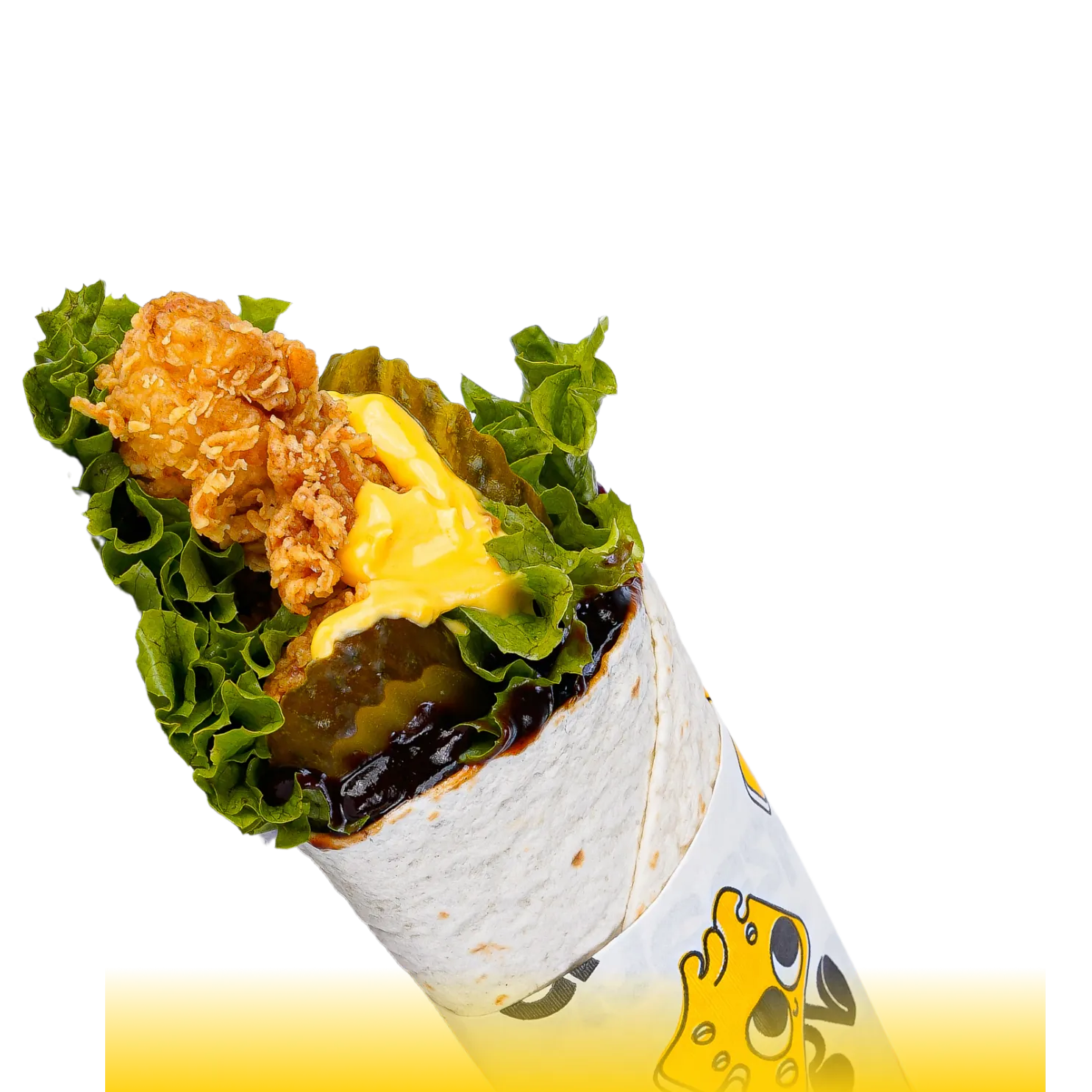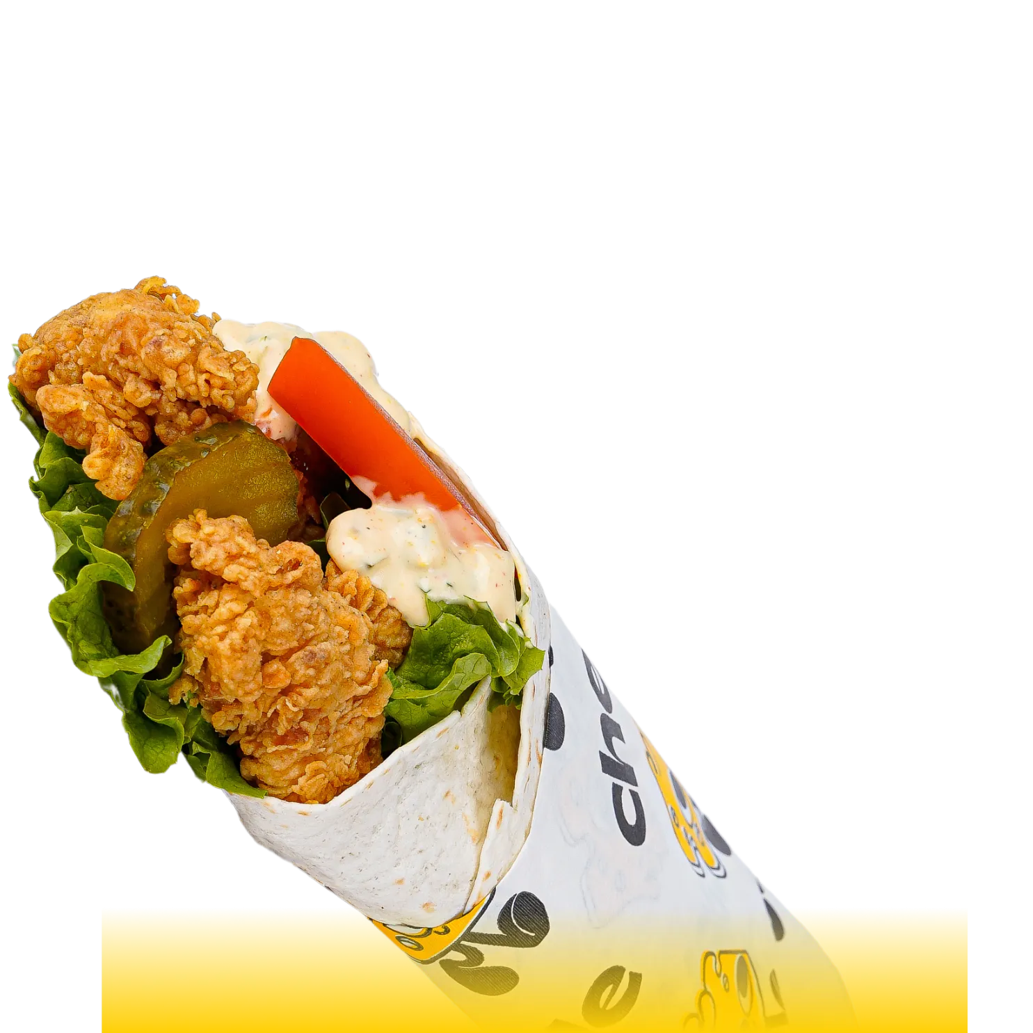 Two crispy chicken strips wrapped with fresh lettuce, tomato, crunchy pickles, and layered with Thousand Island and Cheezle sauces. A bold, satisfying wrap fit for a king.