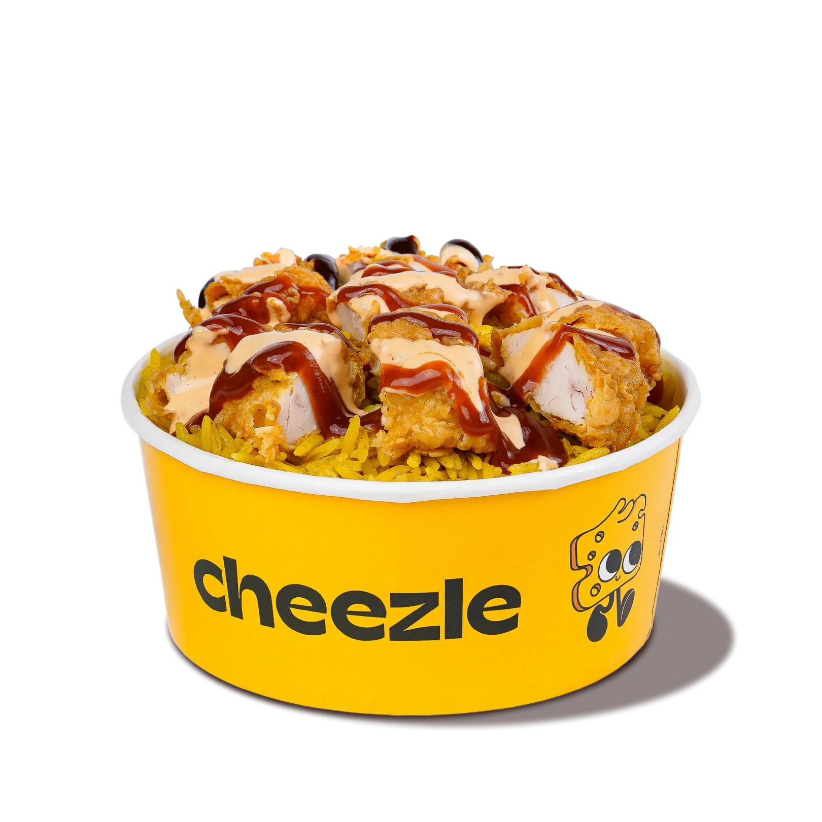 Juicy chicken cubes served over a bed of fluffy rice, topped with smooth cocktail sauce and a rich drizzle of creamy Cheezle sauce. A cheesy, comforting combo that’s big on flavor and hard to resist.