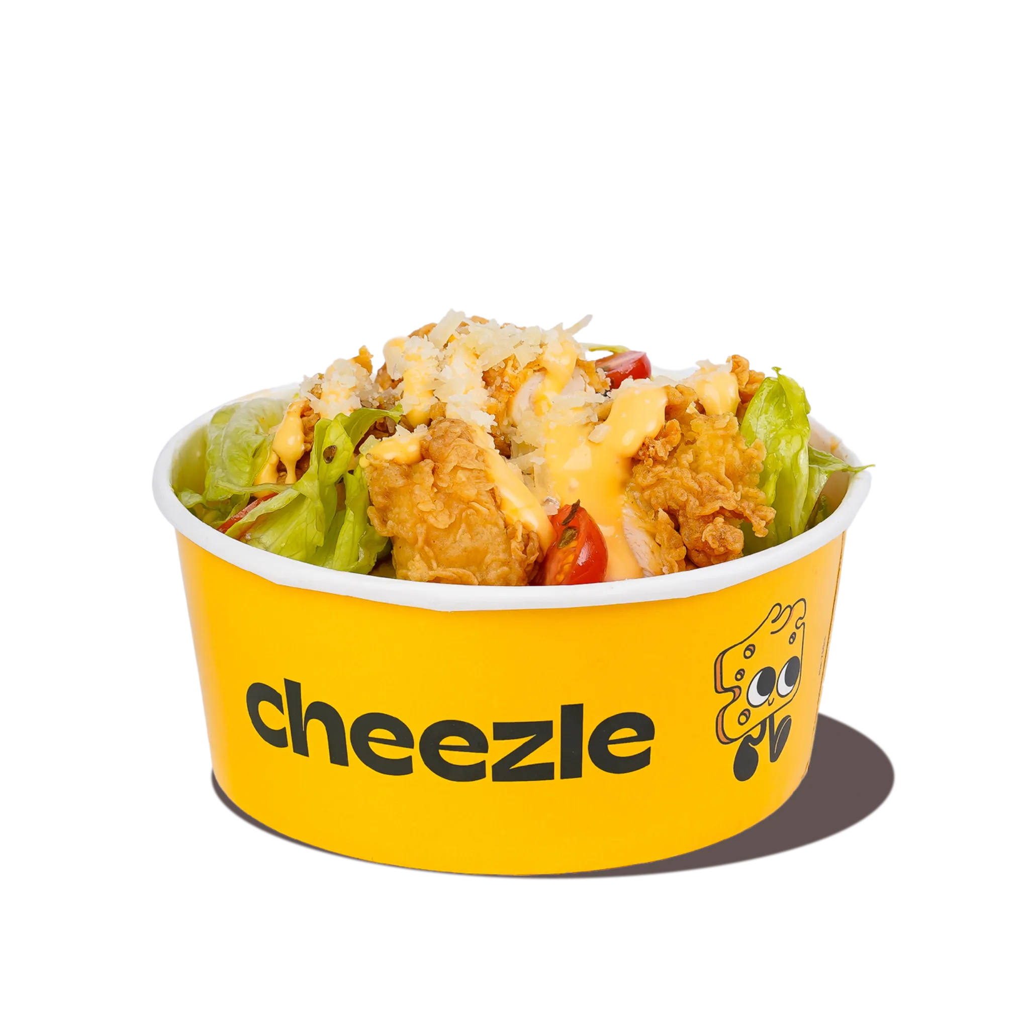 Fresh, crisp lettuce tossed with tender chicken, juicy cherry tomatoes, green olives, and a sprinkle of Parmesan, all drizzled with our signature Cheezle sauce and a hint of oregano. Light, flavorful, and packed with cheesy goodness.