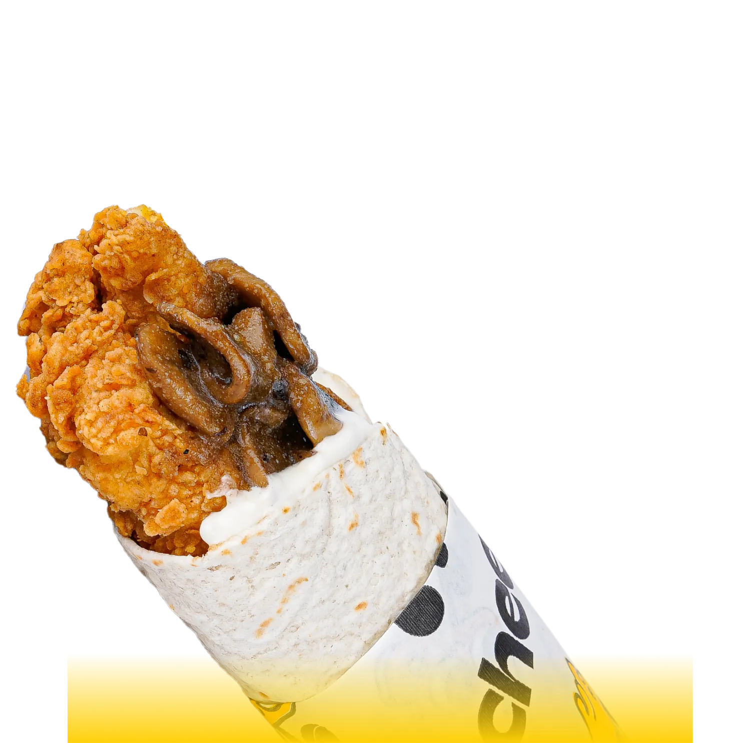Two crispy chicken strips wrapped with sautéed mushrooms, creamy Cheezle sauce, and rich garlic sauce. A warm, savory wrap that’s packed with flavor in every bite.