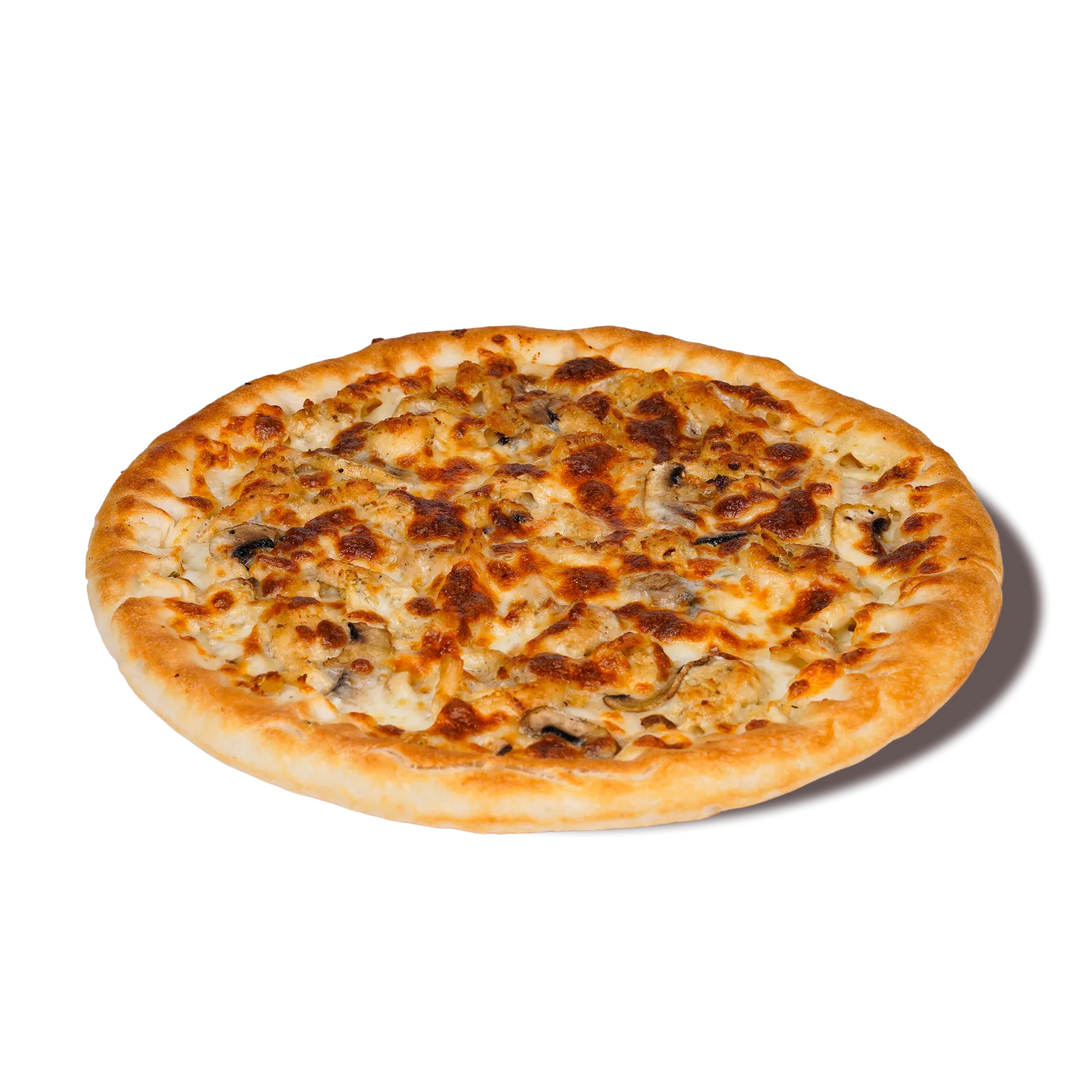 Creamy meets cheesy. Rich Alfredo sauce topped with grilled chicken, tender mushrooms, and a blanket of golden mozzarella, comfort food with a gourmet twist.